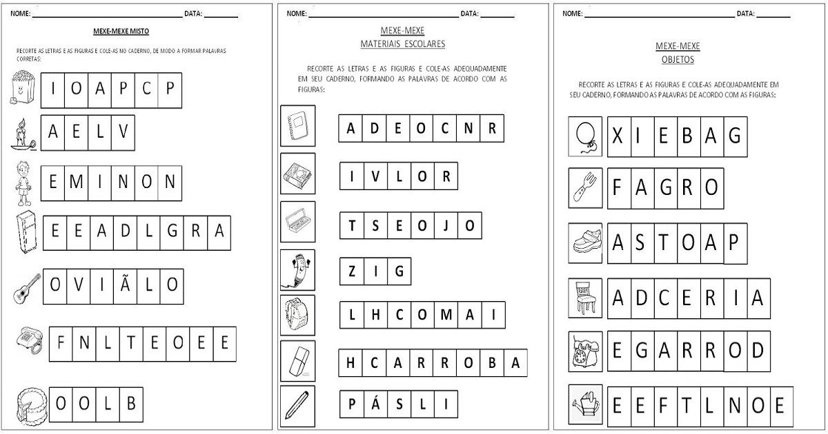 Atividades para Alfabetização – Mexe-Mexe Objetos 3