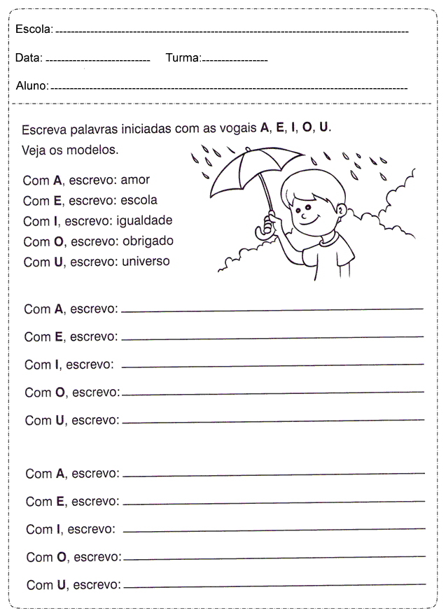 - Escreva palavras iniciadas com as vogais A, E, I, O, U