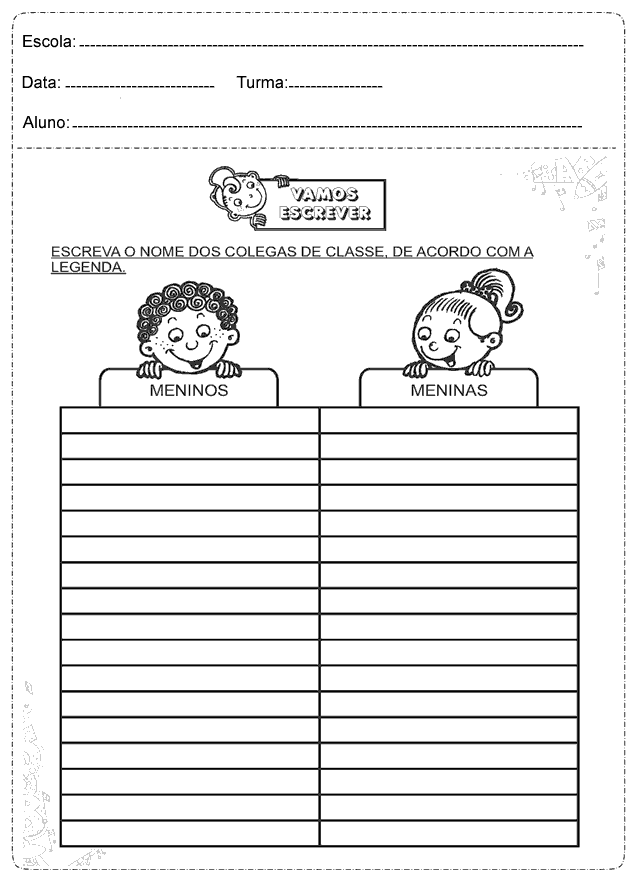 - Escreva o nome dos colegas de classe de acordo com a legenda