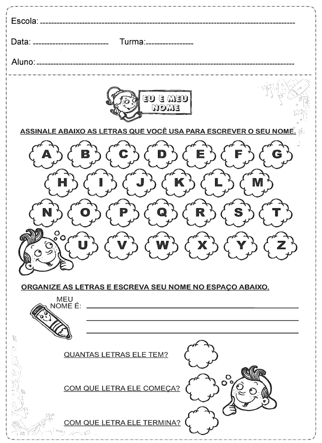 - Circule no quadro apenas as letras que aparecem em seu nome