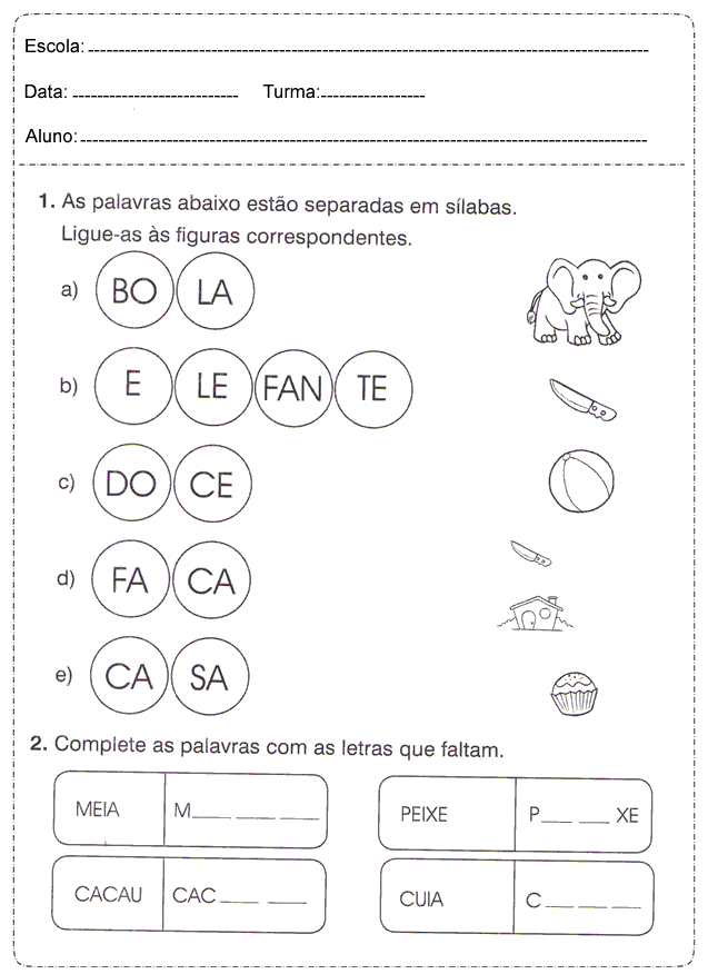 | Complete os nomes dos brinquedos com as letras que estão faltando |