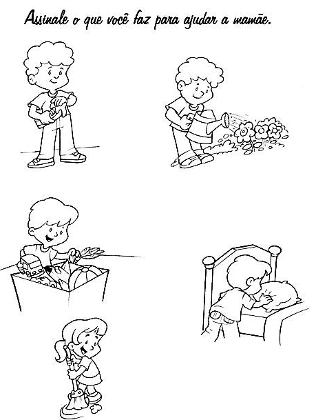 São atividades educativas que em ensinam o que a criança pode fazer para ajudar a mamãe em casa, quais são seus deveres e afazeres, o que pode ou não fazer.