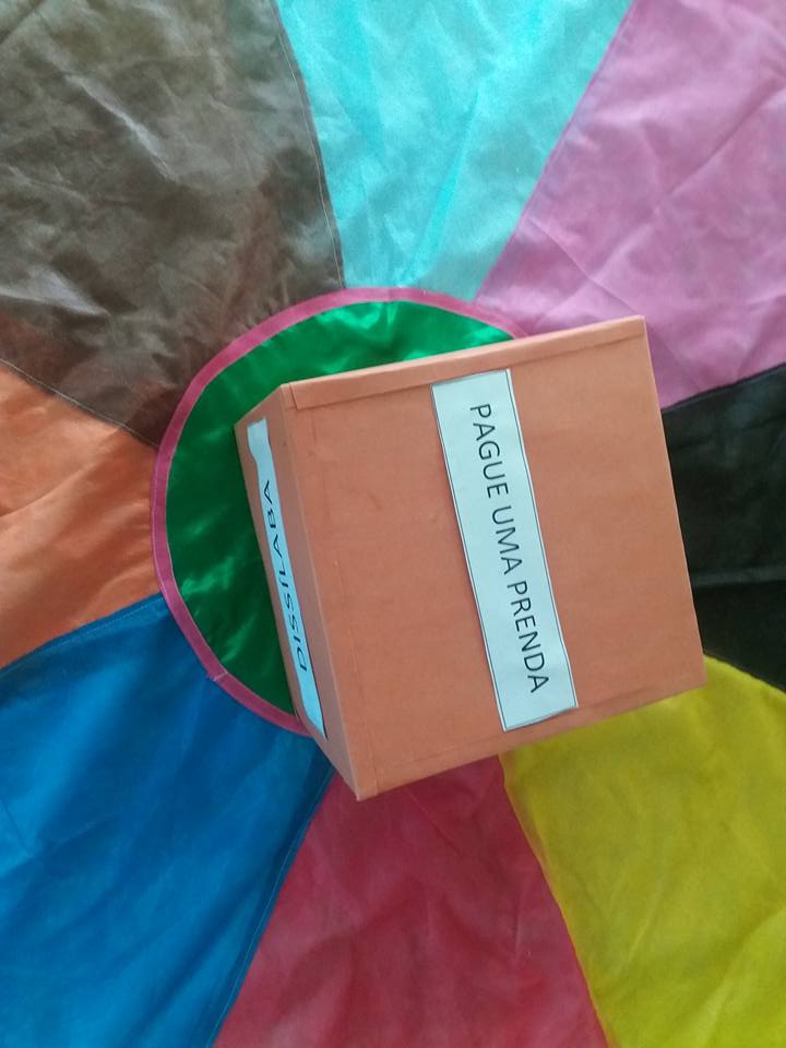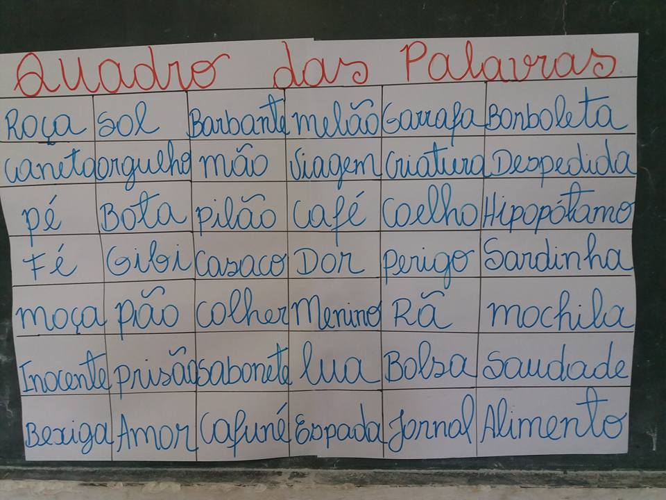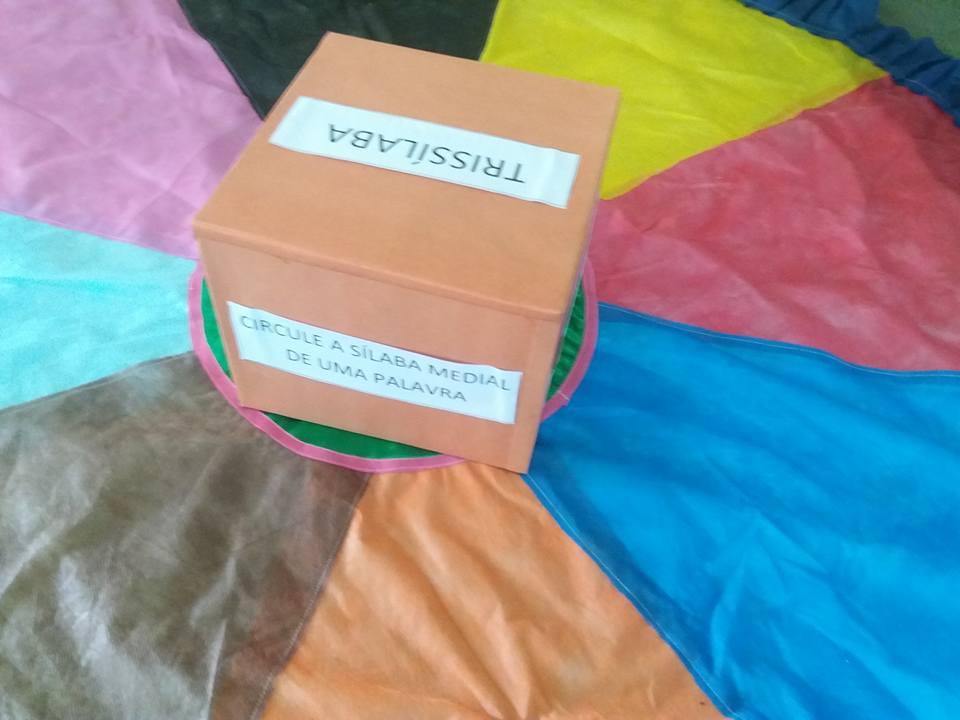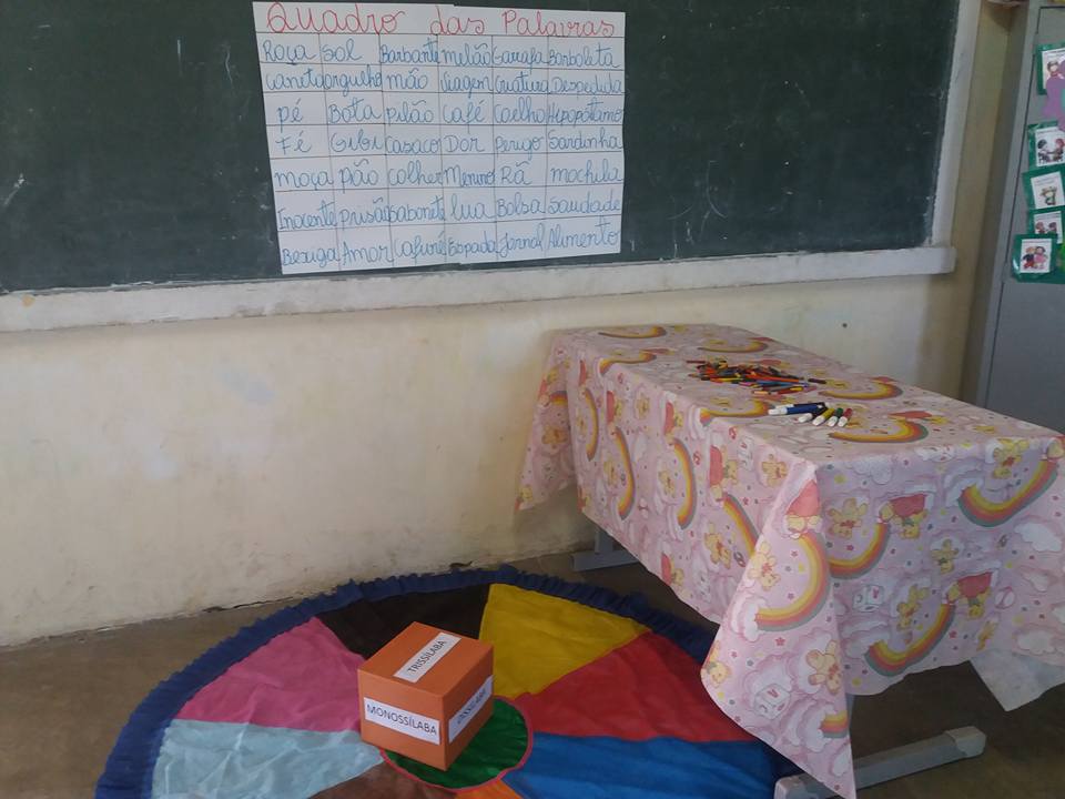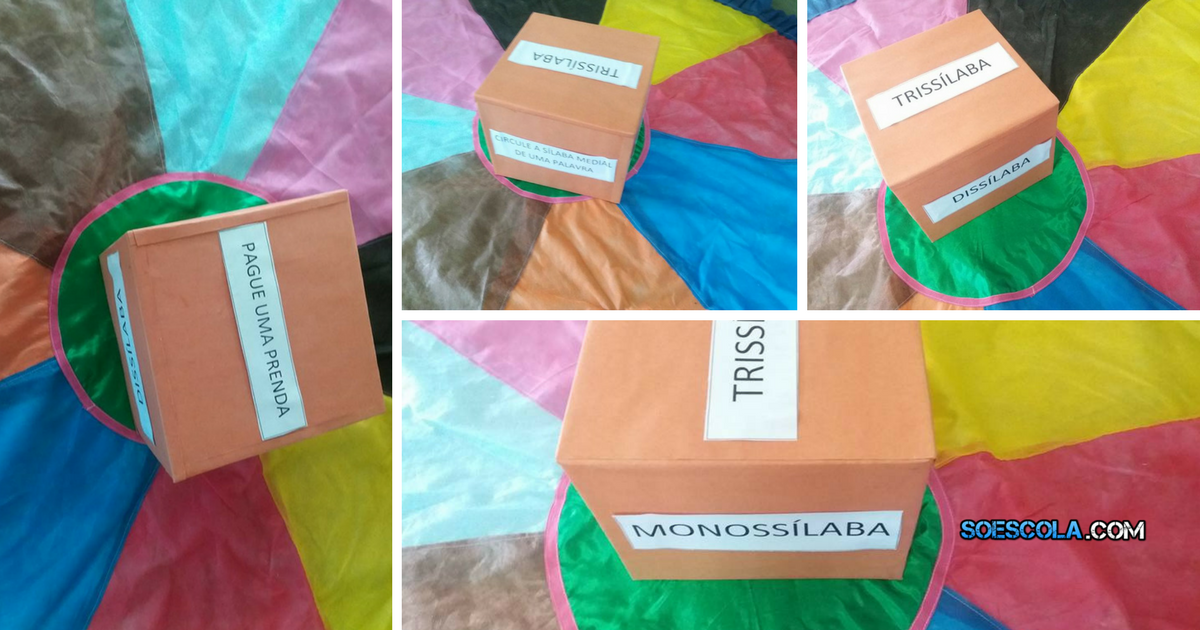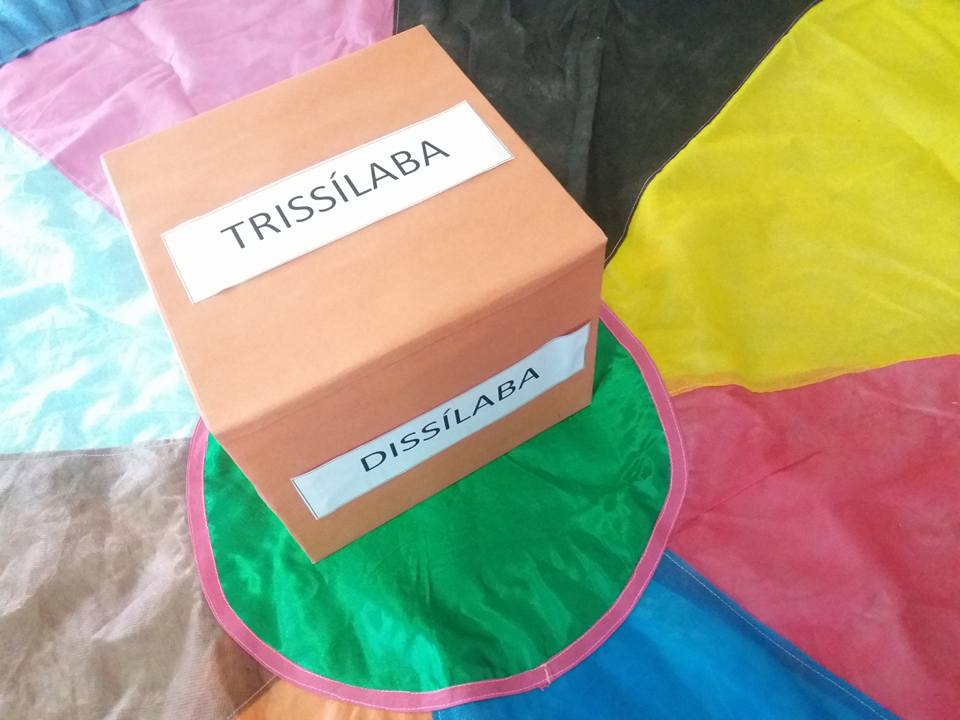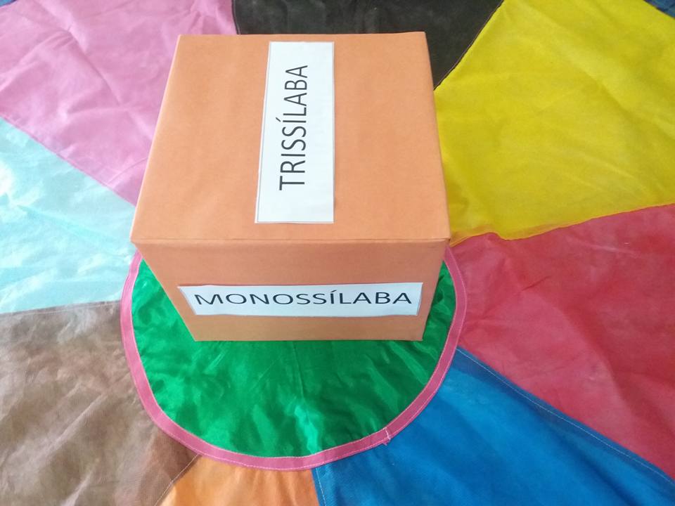 Em cada lado foi colado placas com: MONOSSÍLABA, DISSÍLABA, TRISSÍLABA, POLISSÍLABA, SÍLABA MEDIAL, PAGAR UMA PRENDA.