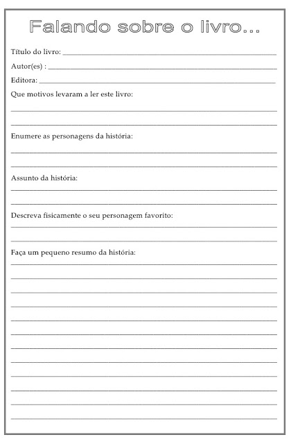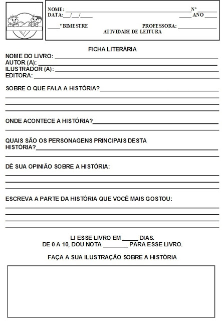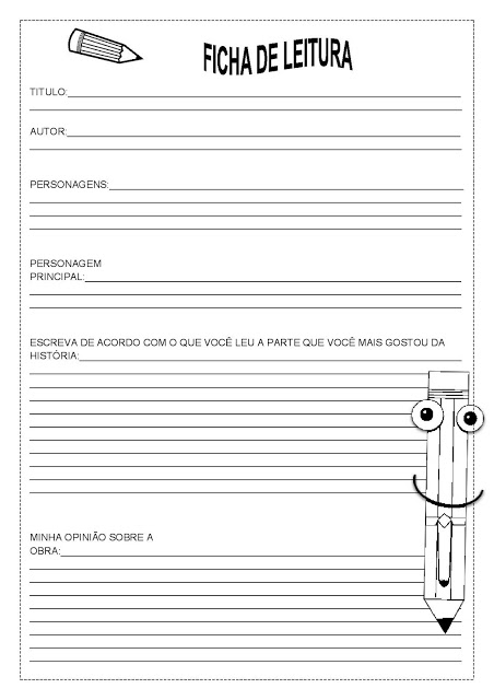 Olá amigos e amigas do SÓ ESCOLA. Nesta postagem trago para vocês algumas Fichas de Leitura para alunos do Ensino Fundamental prontos para imprimir.