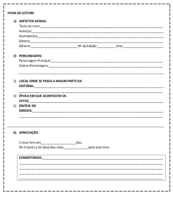 Fichas de Leitura para alunos do Ensino Fundamental