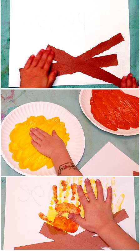 | Fogueira feita com carimbo das mãozinhas |