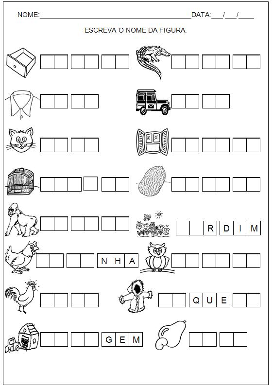 | Hipótese de Escrita Silábica Alfabética – Escreva o nome da figura |