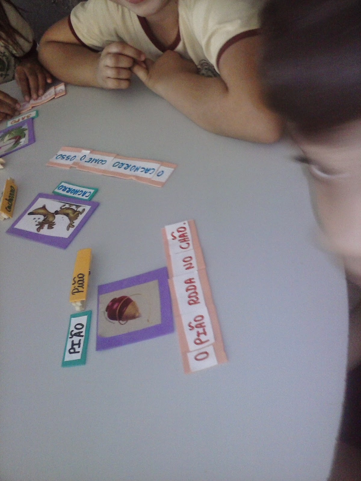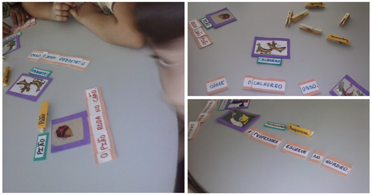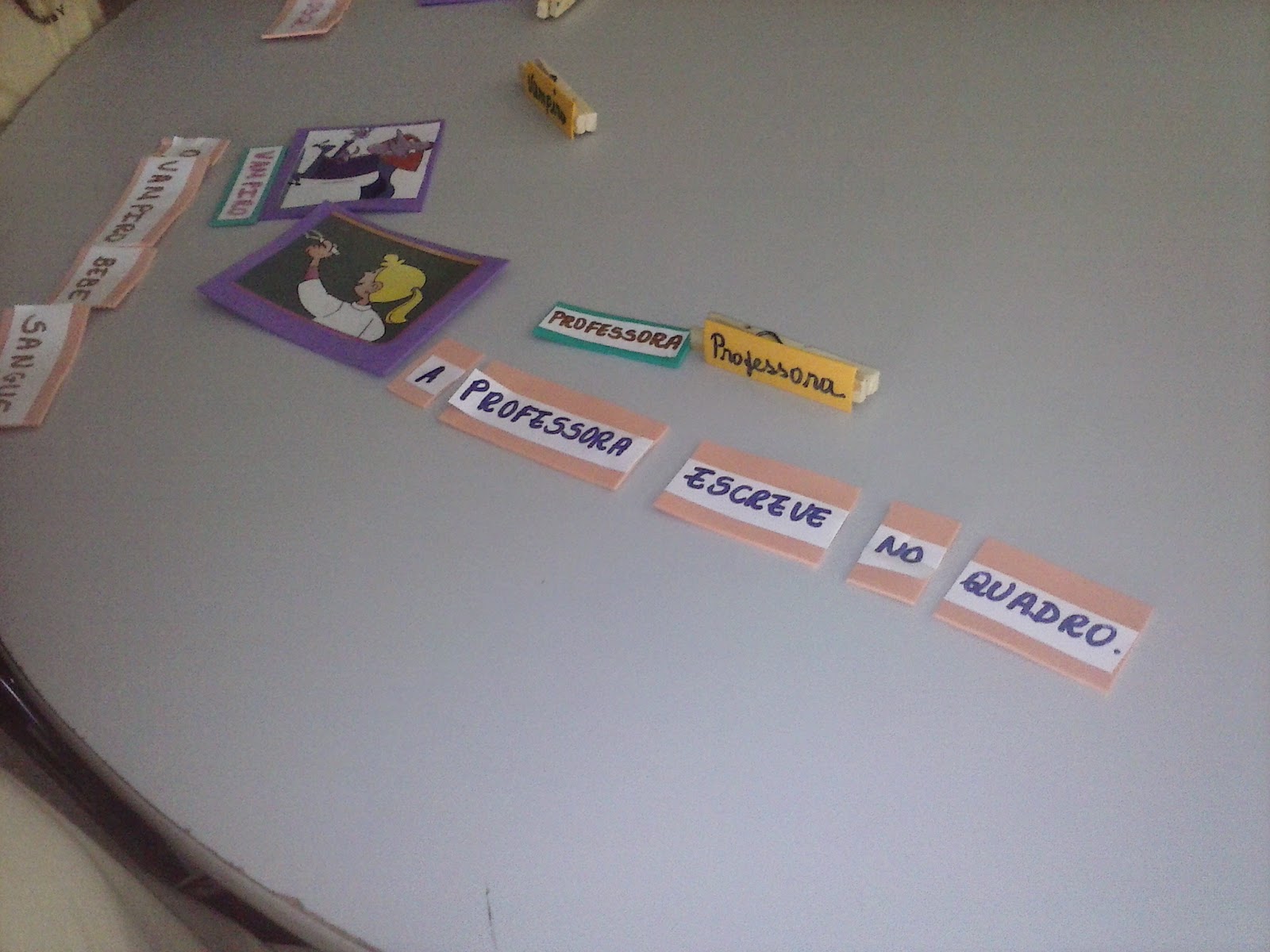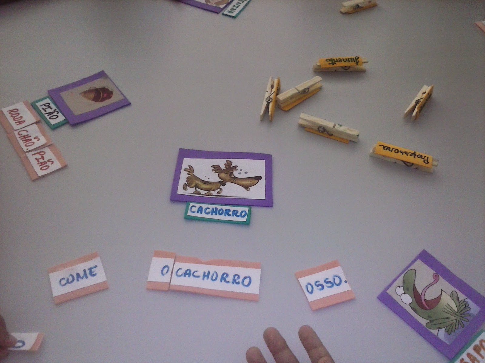 - E em tarjetas maiores faça frases relacionada com a figura e recorte cada palavra (preder a frase no prendedor)