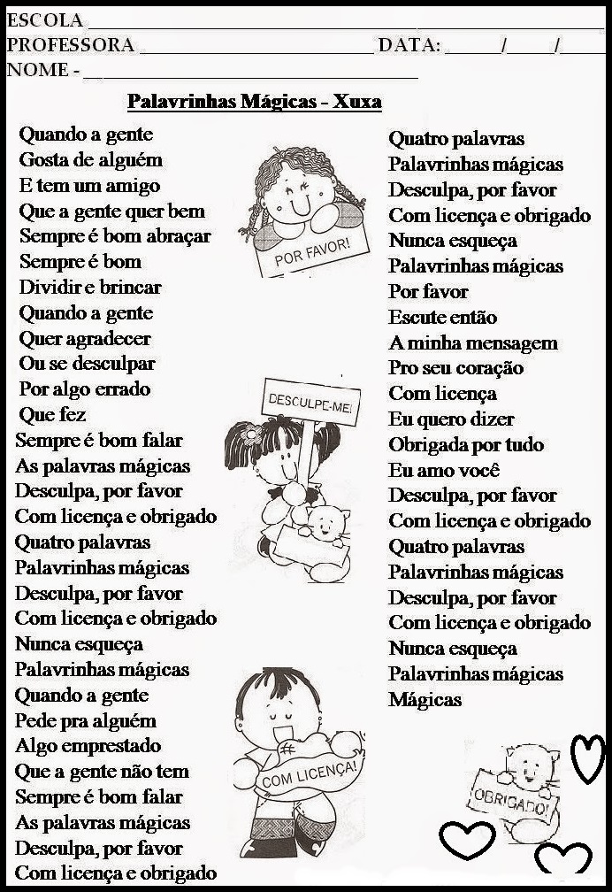 Atividades para trabalhar palavrinhas mágicas para educação infantil para imprimir