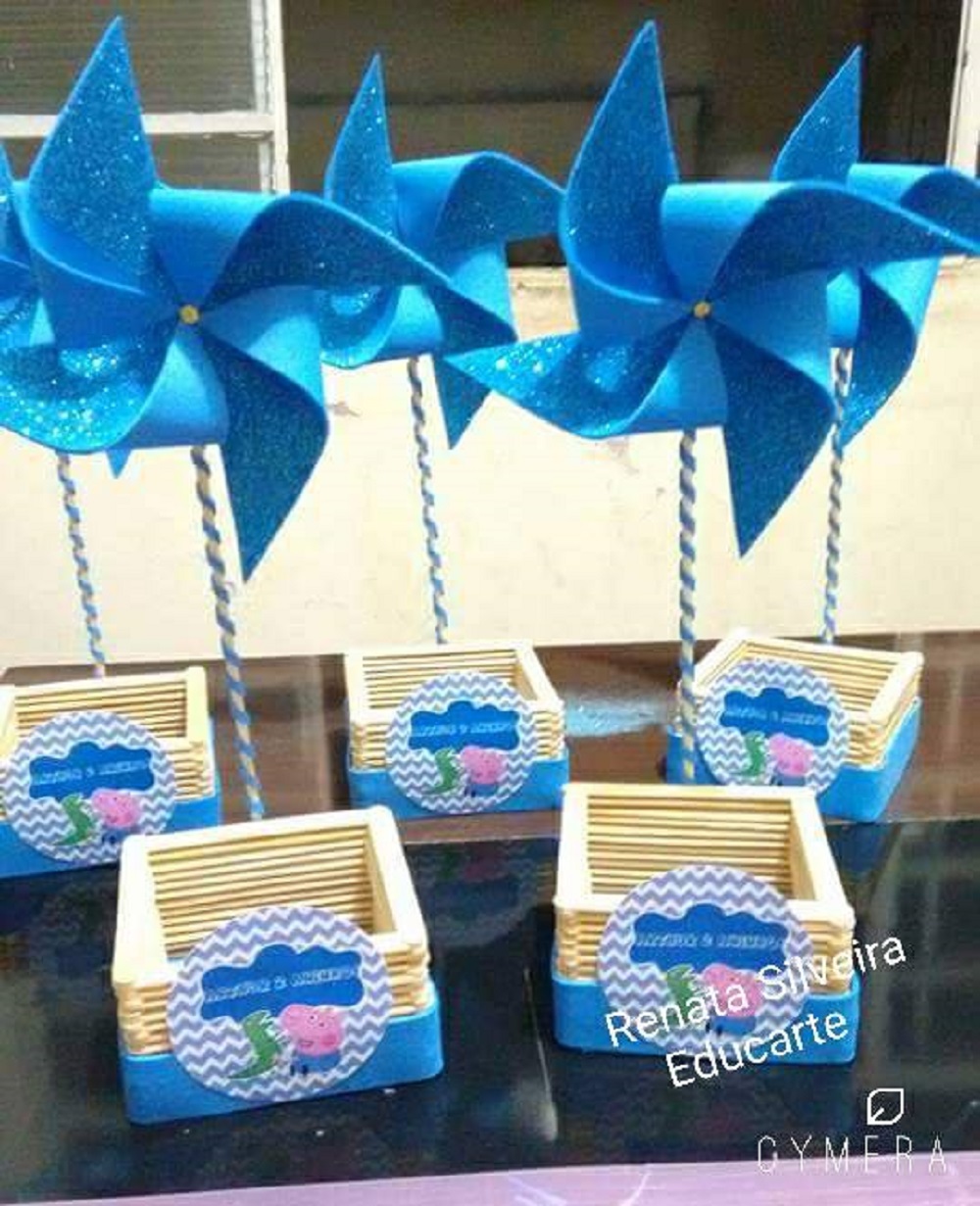 • Feito o catavento, cole-o em uma das pontas do palito já decorado e a outra ponta cole-a na parte traseira do cachepot.