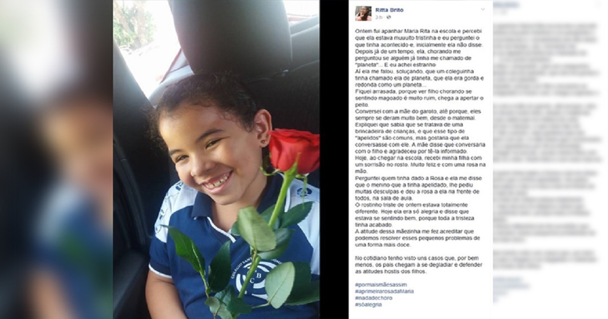 A advogada Ritta Brito perguntou o que estava acontecendo e a filha explicou que o colega lhe deu esse apelido que, segundo ele, por que “ela era gorda e redonda como um planeta”. Triste em ver a filha cabisbaixa, Rita decidiu procurar a mãe do menino para conversar a respeito. A também advogada Lucijane Amanajás, mãe do João Claudio, de 7 anos, prometeu que tomaria uma providência.