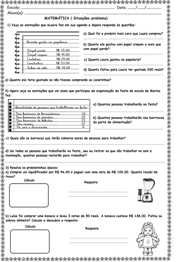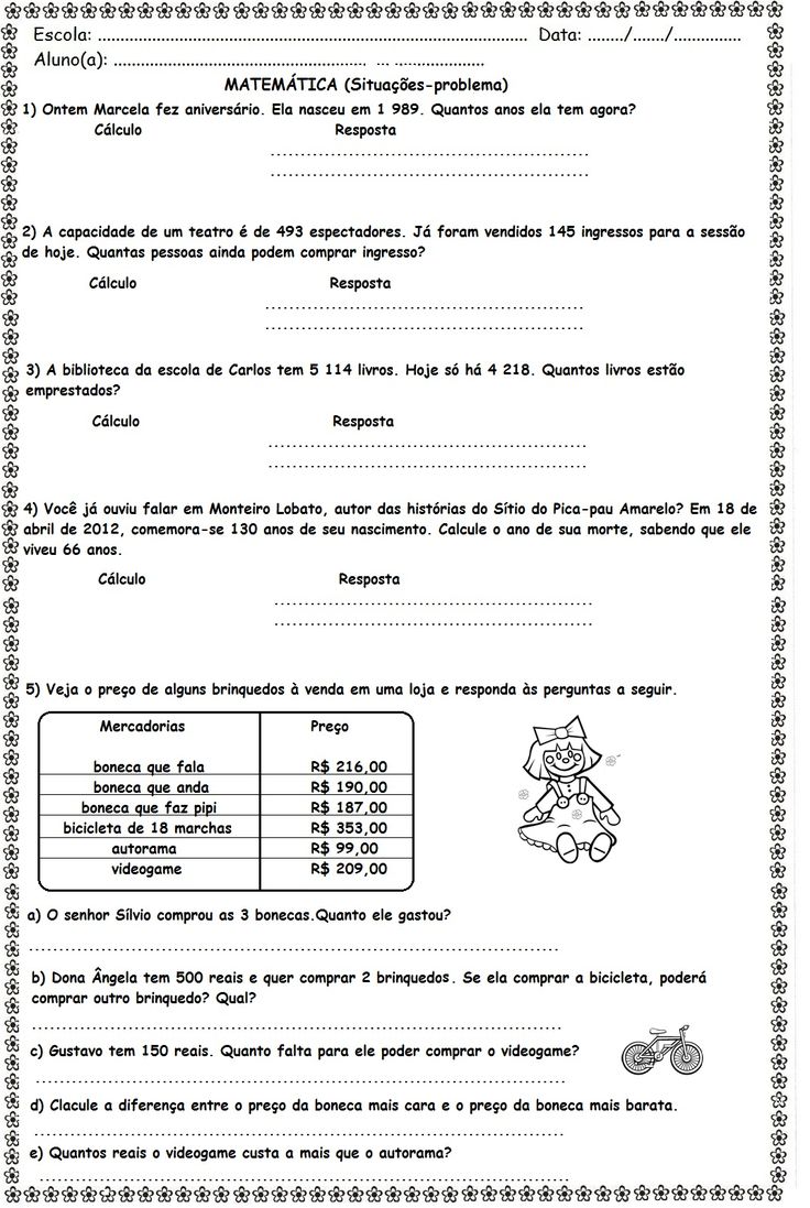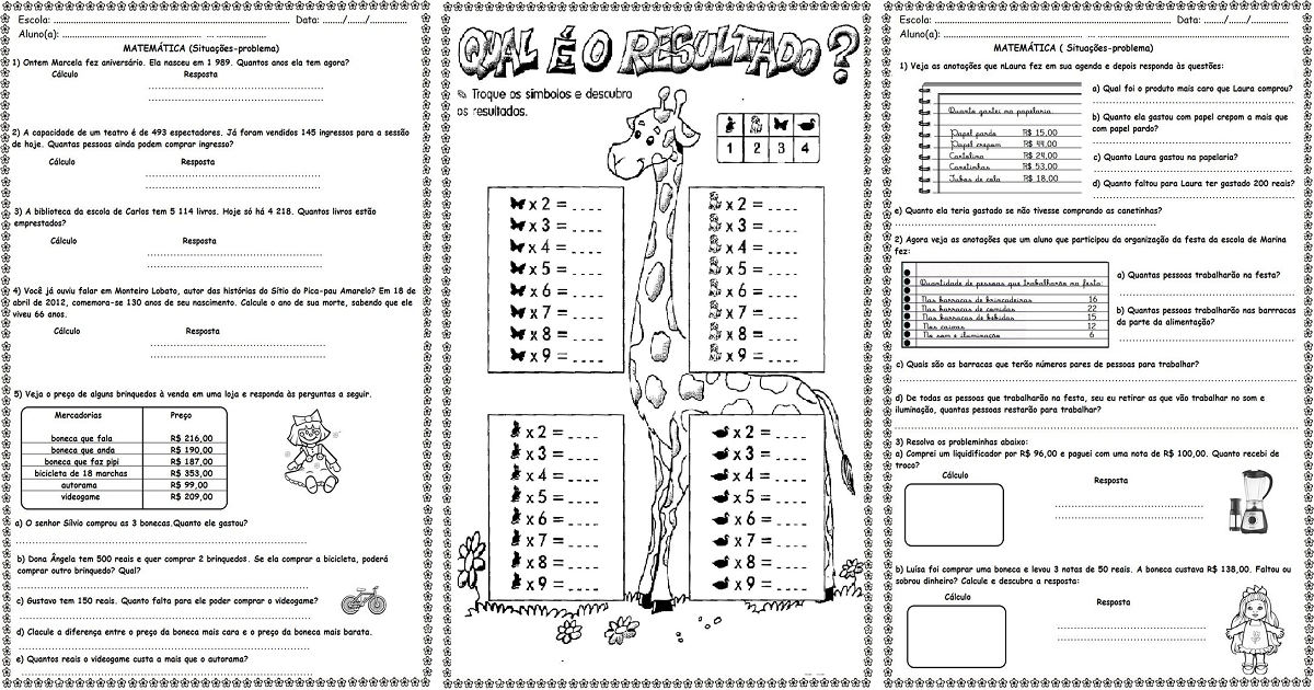 Atividades de adição e subtração 2° e 3° ano para Imprimir