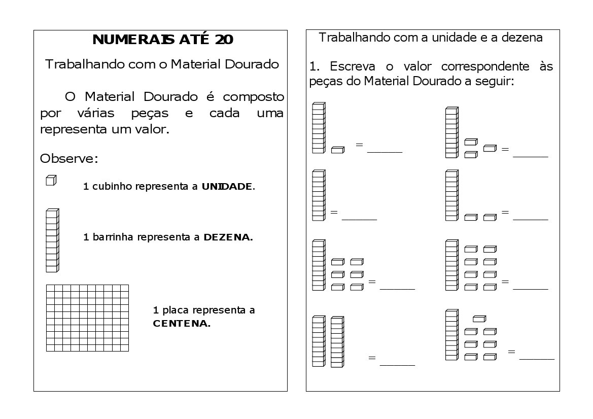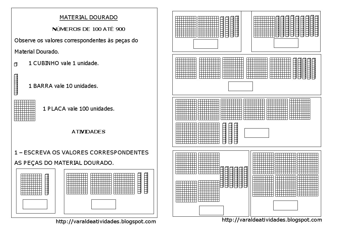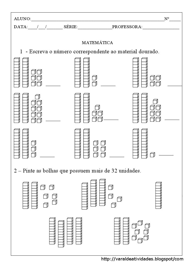 Confira Atividades de Matemática pronta para imprimir para trabalhar material dourado com alunos do terceiro ano do Ensino Fundamental.
