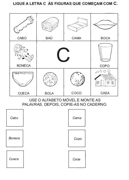 Atividades para Alfabetização – Ligue a figura na letra inicial