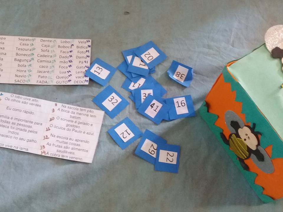 Dentro de uma caixa coloque tarjetas com números, passe a caixa pelos alunos, solicite que um por vez retire um número e dirija-se até o tabuleiro das frases e palavras e peça que realize a leitura oral.