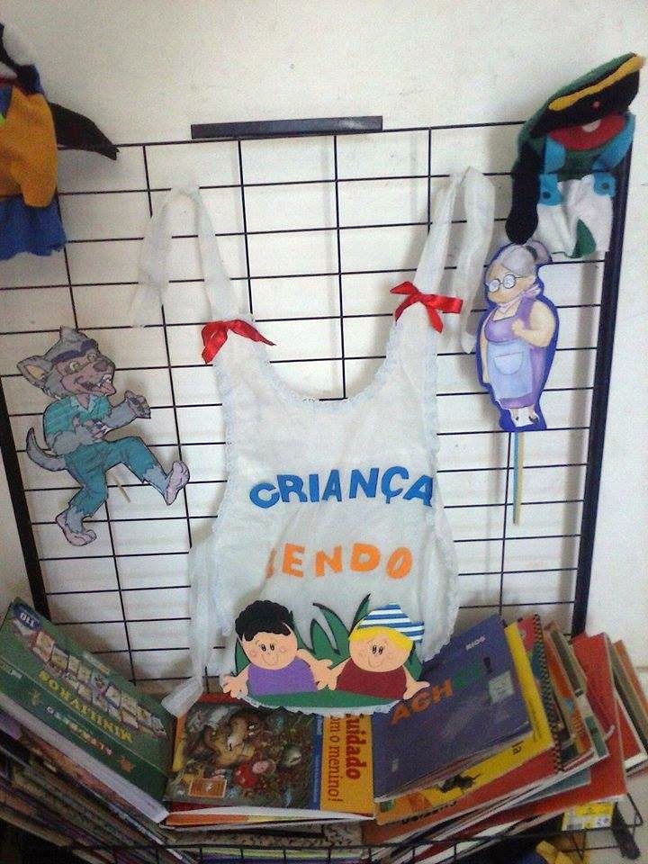 - Escolha um mascote para animar a criançada, neste caso, usamos caixas e confeccionamos um livro bem colorido, inspirado na obra O QUE CABE NUM LIVRO? de Ilan Brenman e Fernando Vilela. ( um livro que instiga a imaginação sem limite);