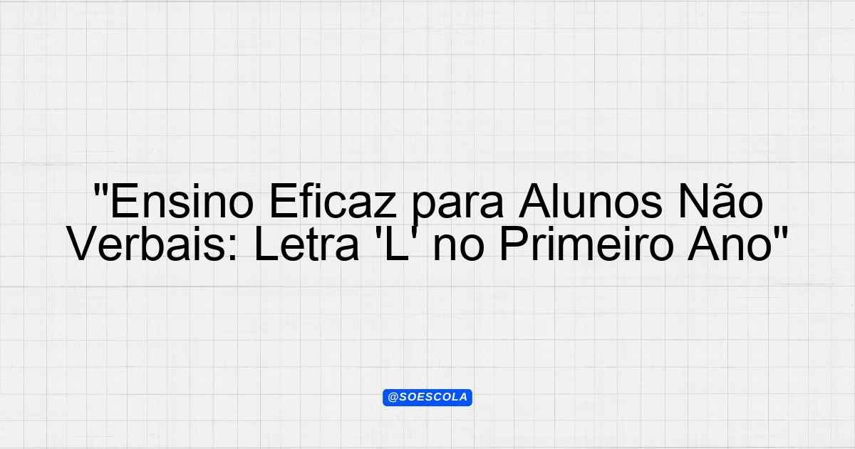 Continue lendo…Aluno do Primeiro Ano Não Verbal com a Letra “L” #### 1. Introdução Neste documento,