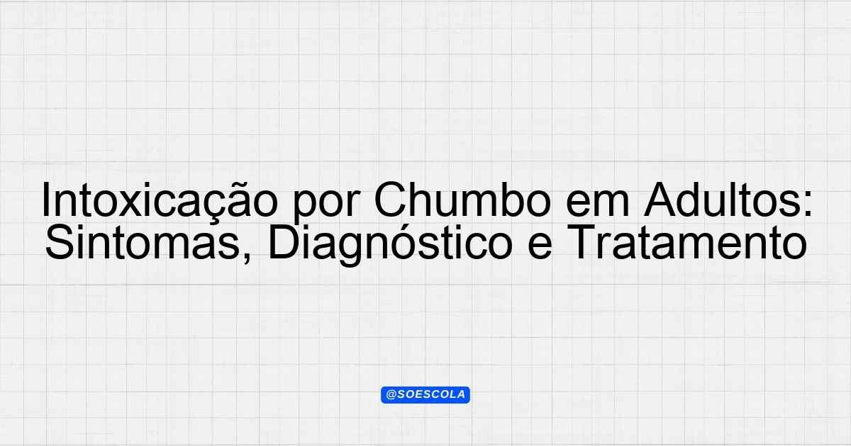 Continue lendo…Intoxicação por Chumbo em Adulto A intoxicação por chumbo é uma condição séria que pode