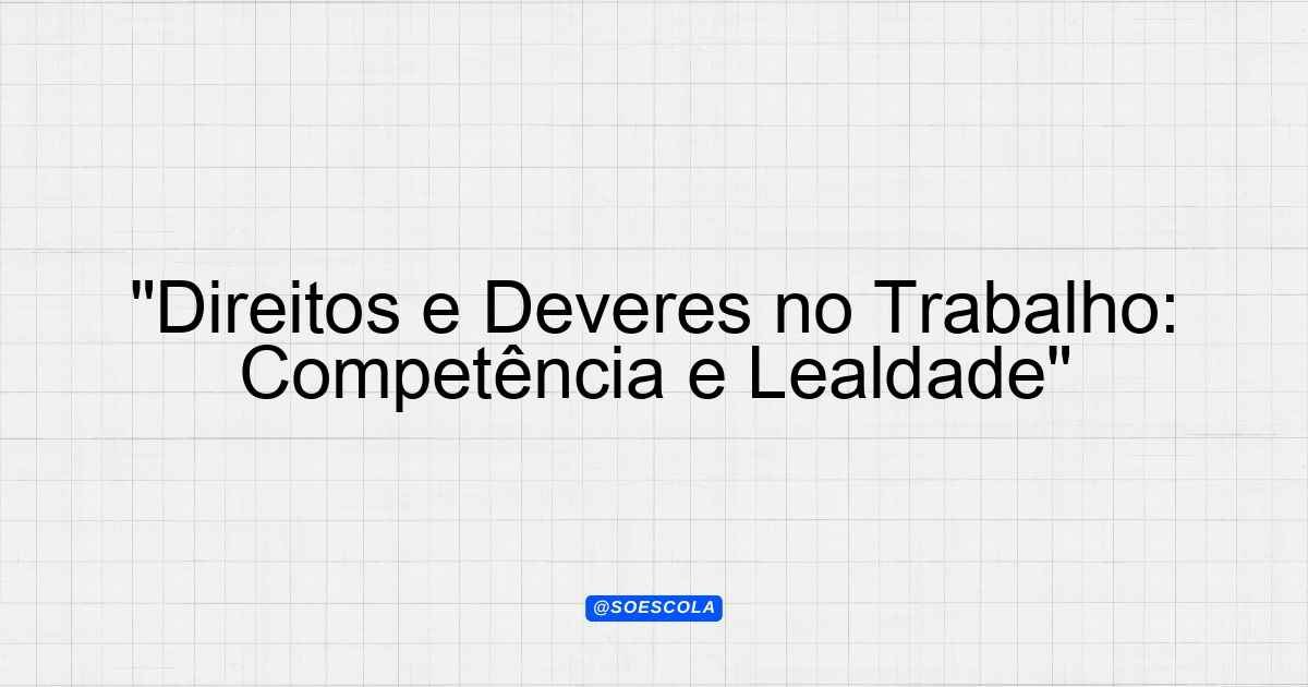 Continue lendo…Direito e Dever de Trabalho com Competência, Lealdade, Zelo e Dedicação Introdução O trabalho é