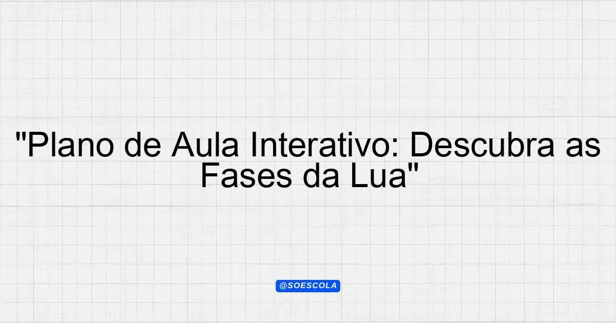 Continue lendo…Plano de Aula: Fases da Lua 1. Introdução 1.1. Objetivo Geral Compreender as fases da