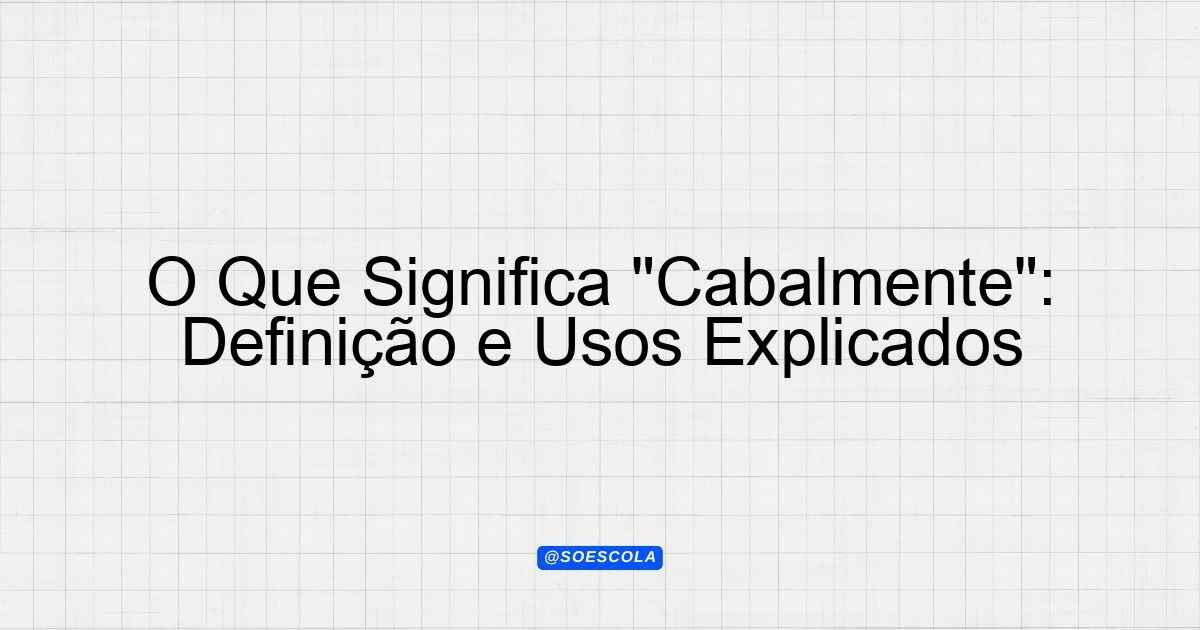 Continue lendo…O Que Significa “Cabalmente” A palavra “cabalmente” é um adjetivo que deriva do substantivo “cabal”,