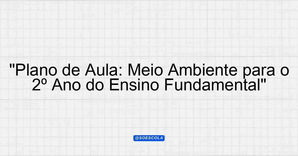 Continue lendo…Plano de Aula Semanal – 2º Ano do Ensino Fundamental Tema: Meio Ambiente Duração: 3