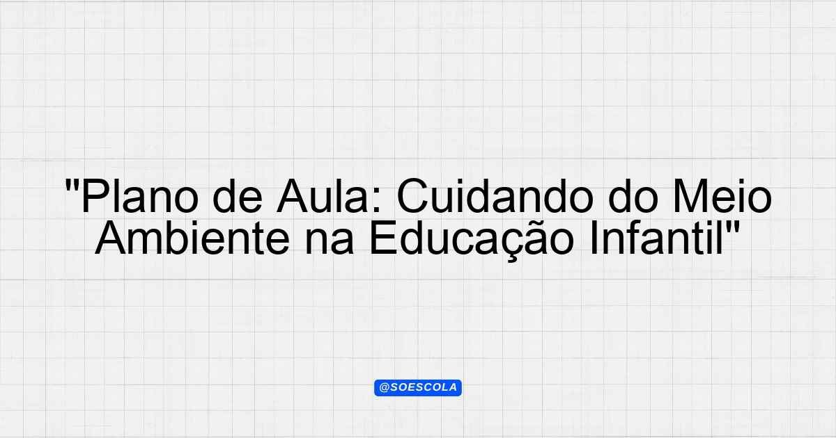 Continue lendo…Plano de Aula sobre Meio Ambiente para Educação Infantil Tema Cuidando do Planeta: Um Olhar