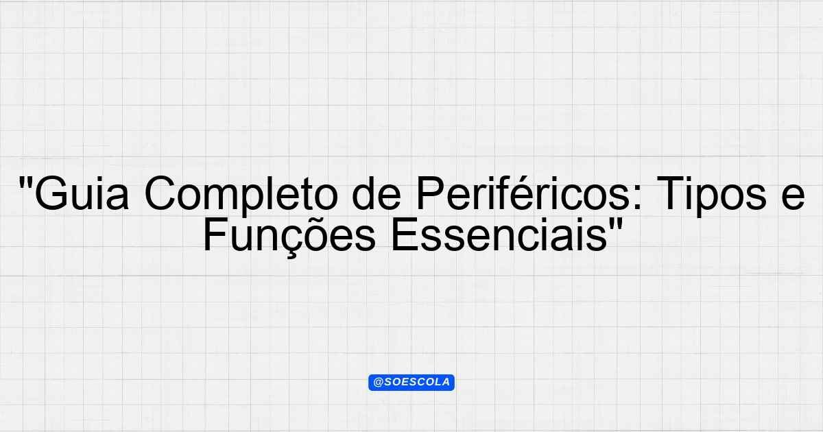 Continue lendo…Exemplos de Periféricos Os periféricos são dispositivos que se conectam a um computador ou a