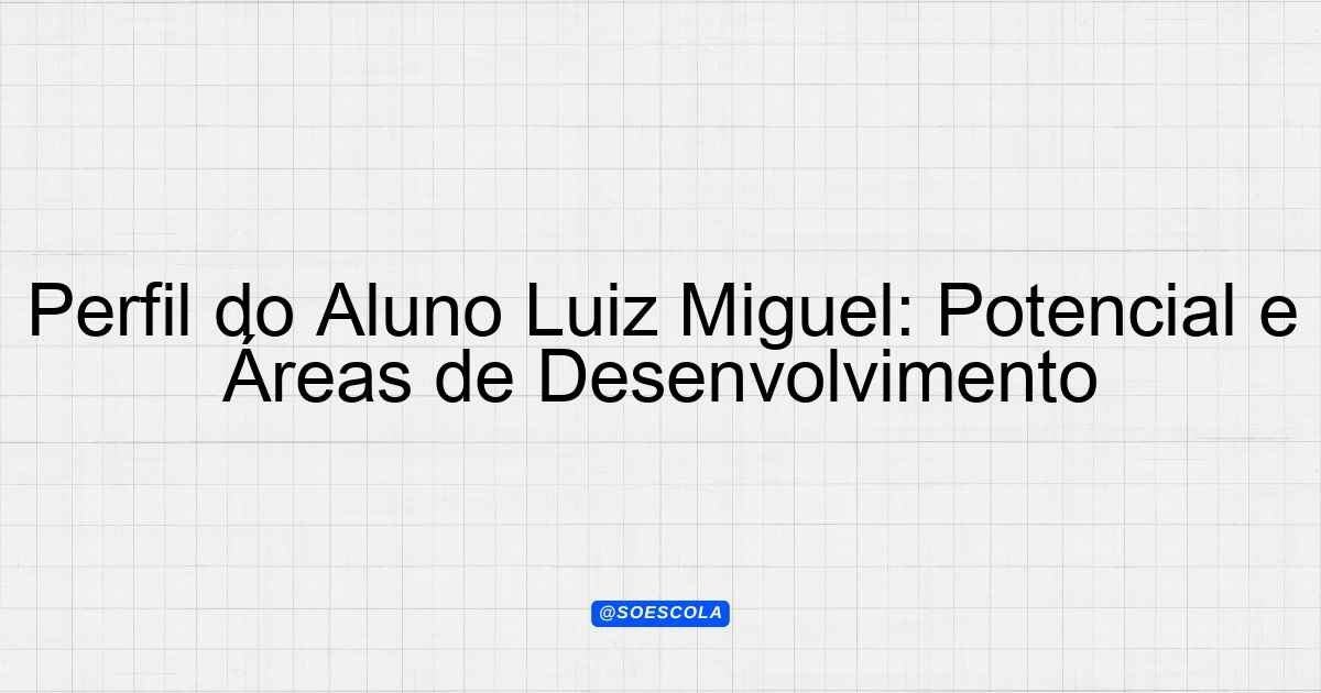 Continue lendo…Relatório sobre o Aluno Luiz Miguel Introdução Este relatório tem como objetivo apresentar um perfil