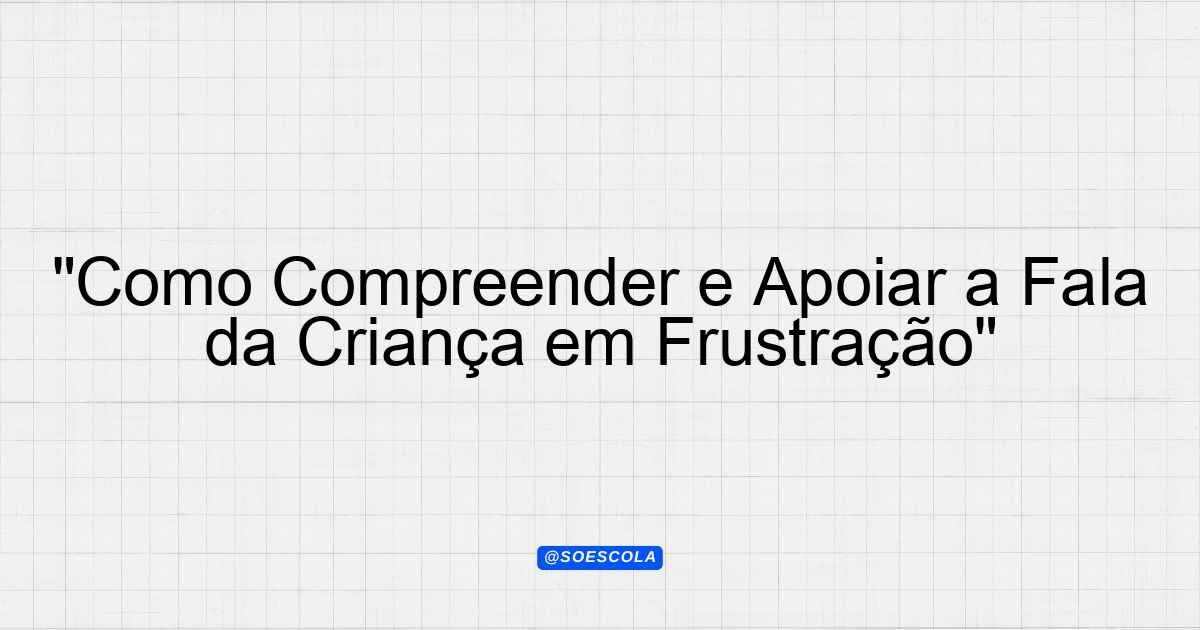 Continue lendo…Estrutura para Informar sobre a Fala da Criança em Frustração #### Introdução No contexto do