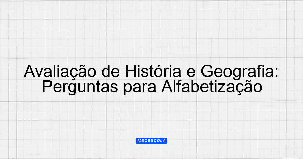 Continue lendo…Perguntas para Avaliação de História e Geografia no Edivaldo: Alfabetização, Primeira Série A avaliação de