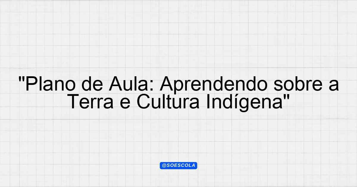 “Plano de Aula: Aprendendo sobre a Terra e Cultura Indígena”