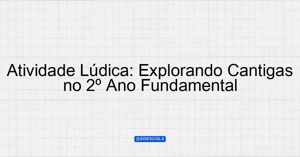 Continue lendo…Atividade para Trabalhar o Gênero Cantiga – 2º Ano Fundamental Introdução Esta atividade tem como