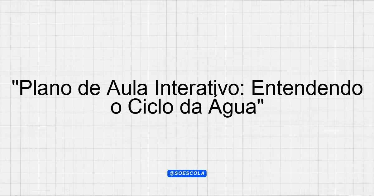 Continue lendo…Plano de Aula: Ciclo da Água Objetivo da Aula Compreender o ciclo da água, suas