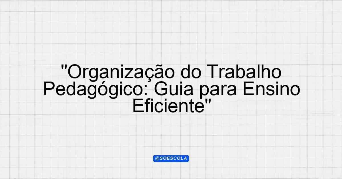 Continue lendo…ORGANIZAÇÃO DO TRABALHO PEDAGÓGICO Objetivo O principal objetivo da organização do trabalho pedagógico é garantir