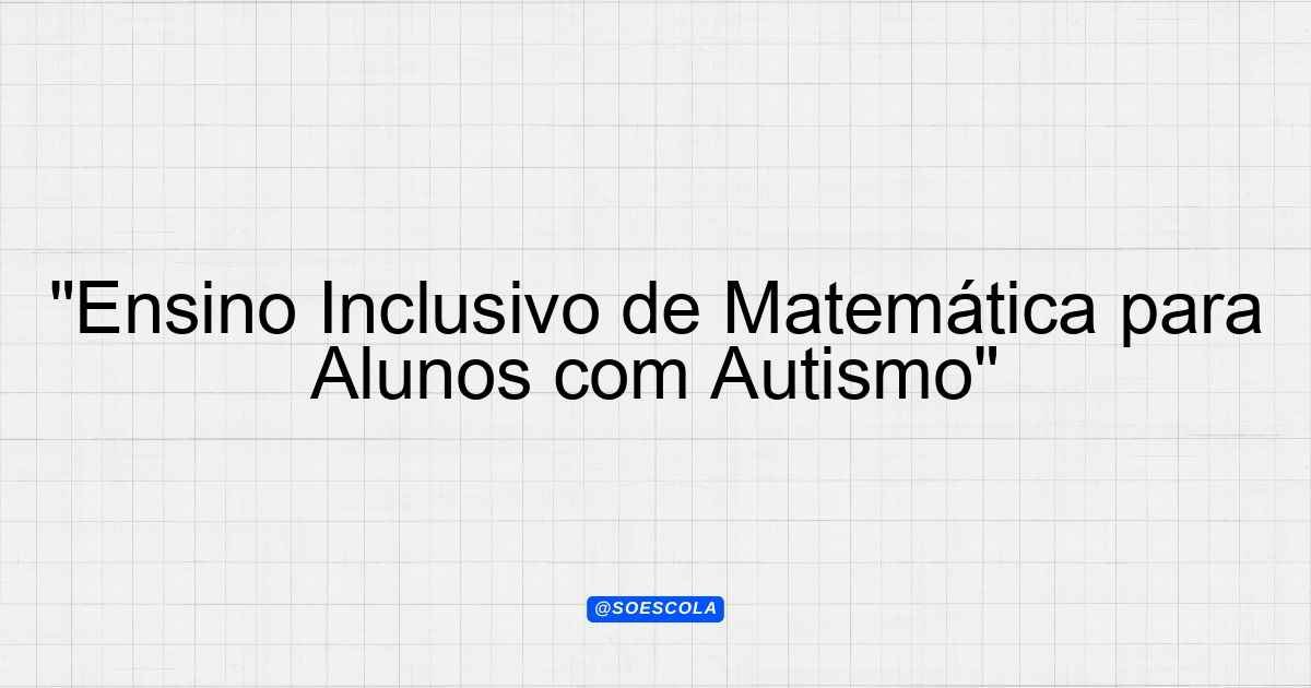 Continue lendo…Projeto Pedagógico de Matemática para Alunos com Autismo Introdução O ensino de matemática para alunos