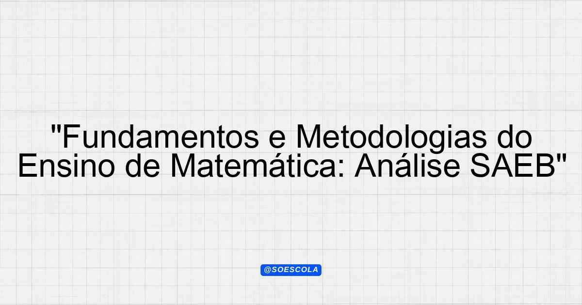 Continue lendo…Trabalho sobre Fundamentos e Metodologias do Ensino da Matemática e Gráficos do SAEB Introdução O
