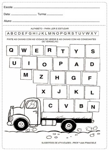 Navegando pela INTERNET encontrei uma lista de atividades para colorir e imprimir para a alfabetização.