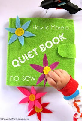 queça a pistola de cola e prepare-se para montar o seu livro Quiet Book em branco.
