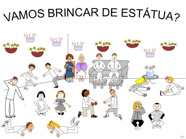 5- EstátuaParticipantes: 5 ou maisMateriais Necessários: Aparelho de som, CD de Músicas.Regra: Todos os jogadores fazem um círculo e um fica como o mestre, controlando o som. Quando o mestre quiser ele abaixa o volume e diz “estátua”! Os jogadores devem ficar em posição de estátua, sem se mexer e o mestre vai tentar fazer caretas e brincadeiras para ver quem se mexe primeiro. Não vale fazer cócegas. Quem se mexer ou rir primeiro fala um versículo e vai para o lugar do animador.