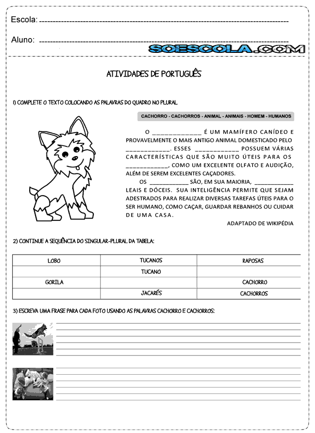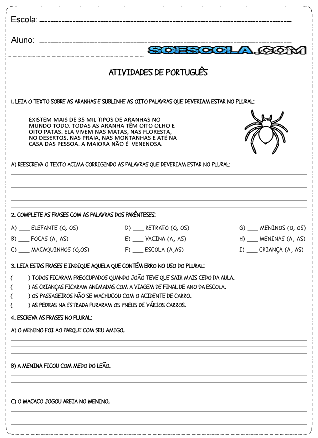 | Atividades sobre Plural para Imprimir ou Baixar |
