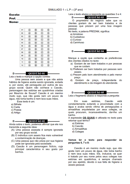 SIMULADO LÍNGUA PORTUGUESA 3º ANO