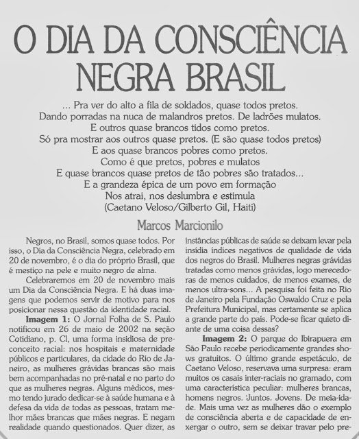 | Texto e Atividades sobre o Dia da CONSCIÊNCIA NEGRA |