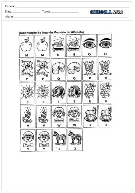 Olá amigos e amigas do Só Escola. Nesta postagem trago para vocês uma sugestão de trabalho com o alfabeto de forma lúdica – Jogo da memória.