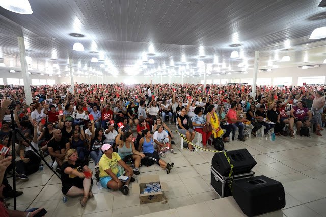 | Assembleia sobre a aderência à greve nacional, em Maringá, no Paraná. Crédito: APP-Sindicato |