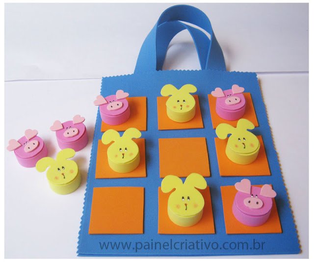 Você pode fazer também o Jogo da Velha com Eva e fica uma fofura! Veja o passo a passo abaixo: