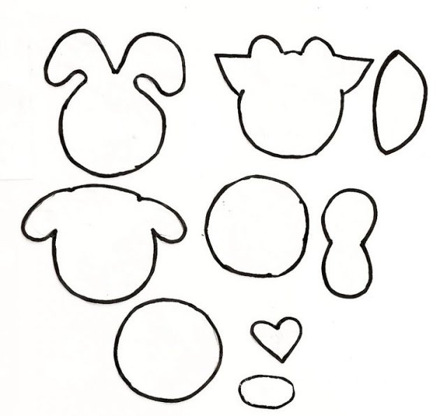 3. Com os moldes faça os bichinhos de sua preferência e cole em cima de cada tampinha.