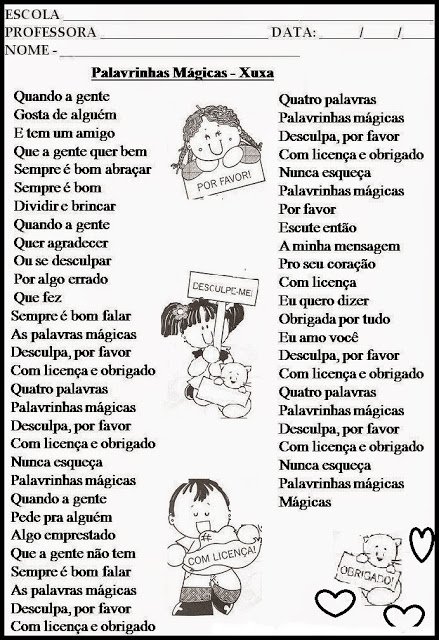 Atividades para trabalhar palavrinhas mágicas para educação infantil para imprimir