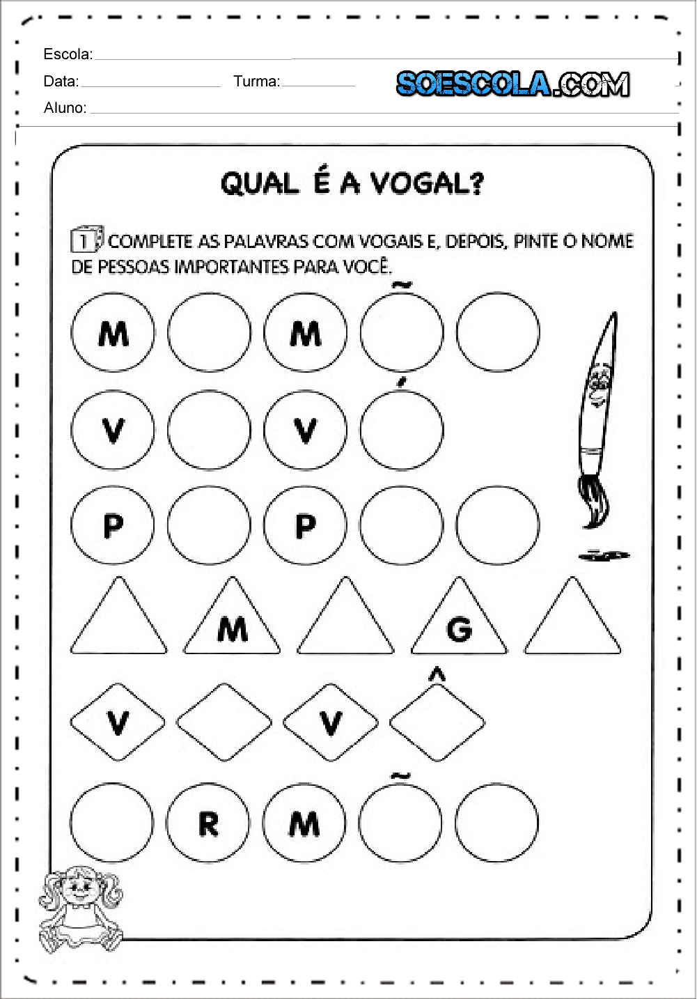 Não deixe de ver também: Atividade com as vogais, para completar o nome dos desenhos.