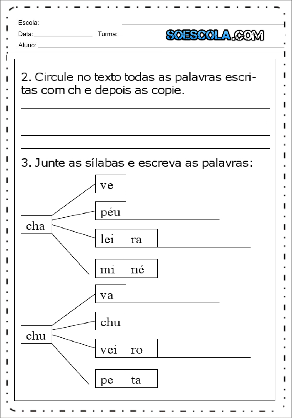 Selecionamos mais algumas sugestões de atividades de português prontas para imprimir para trabalhar com palavras CH.